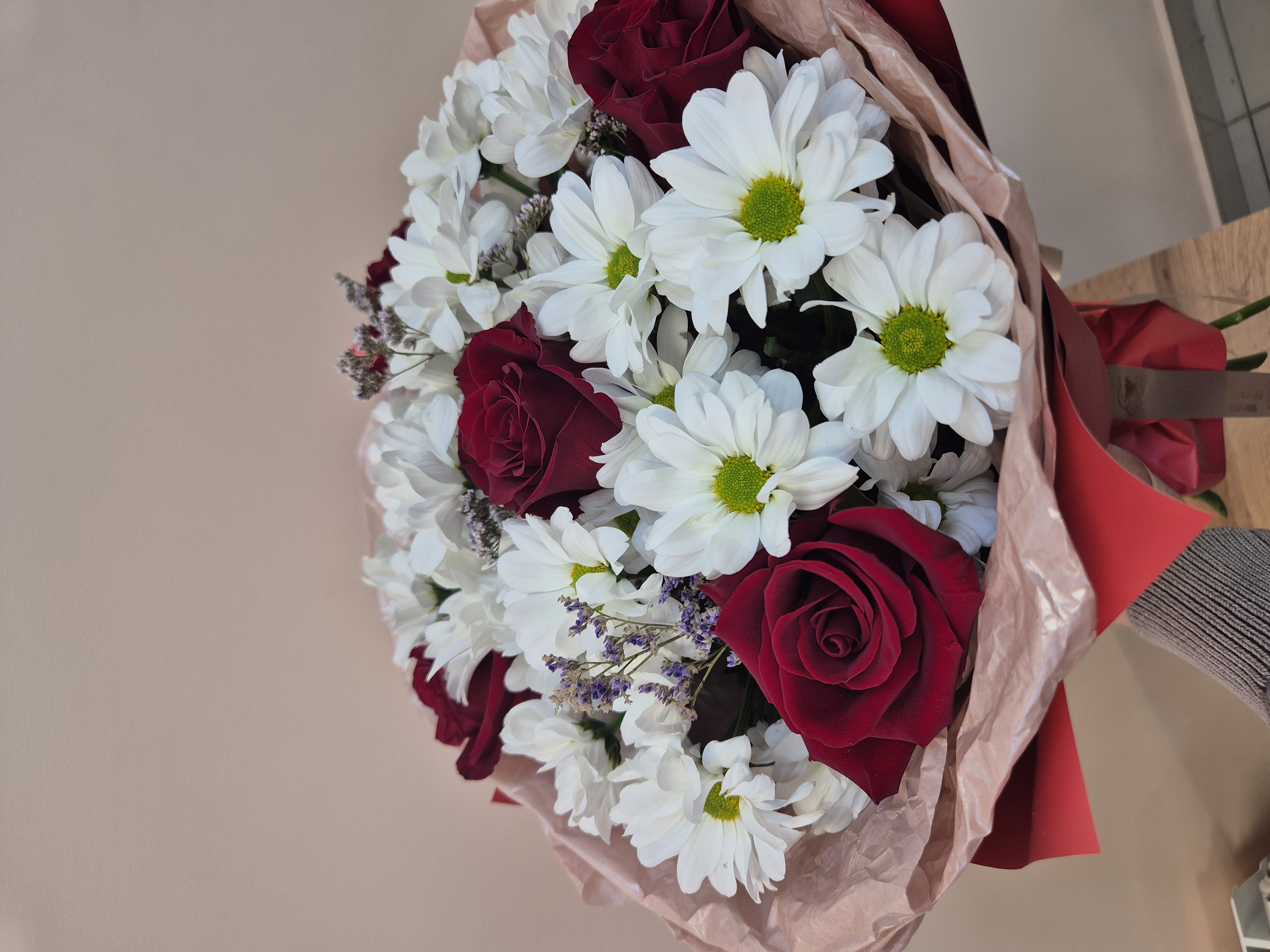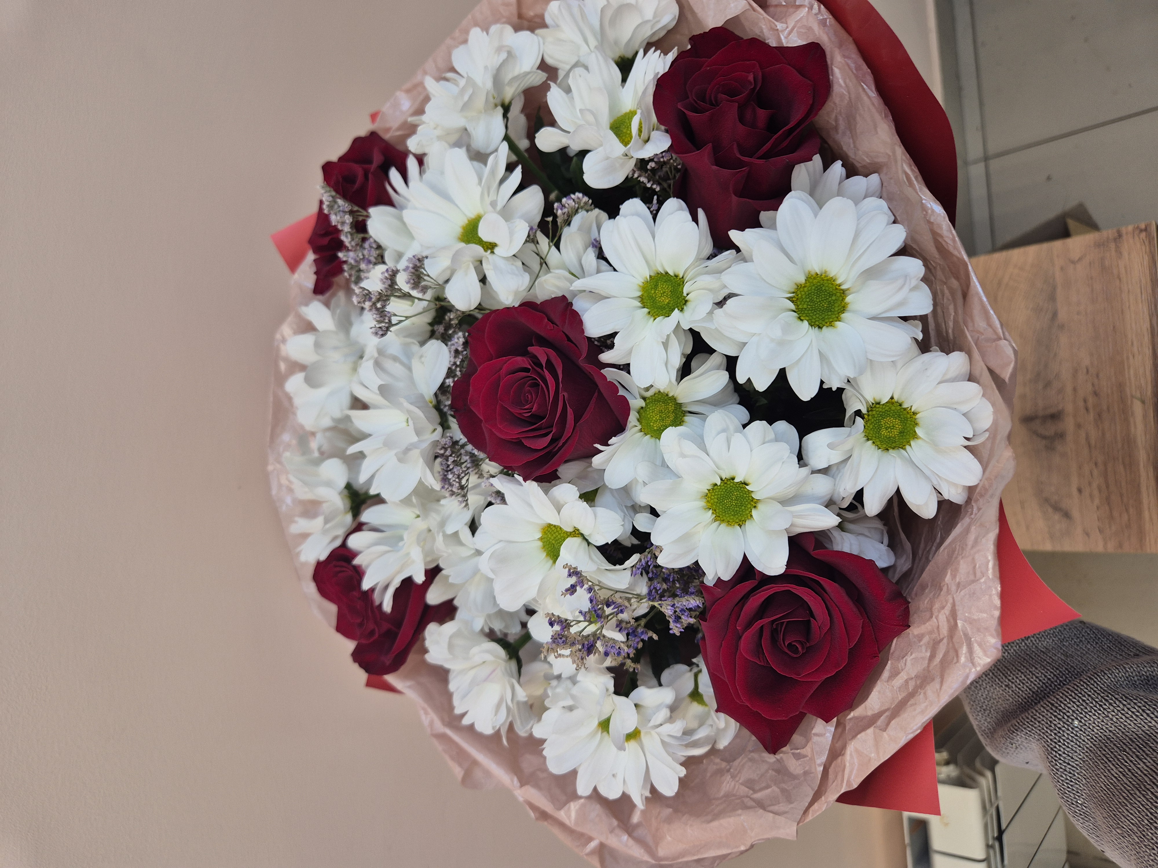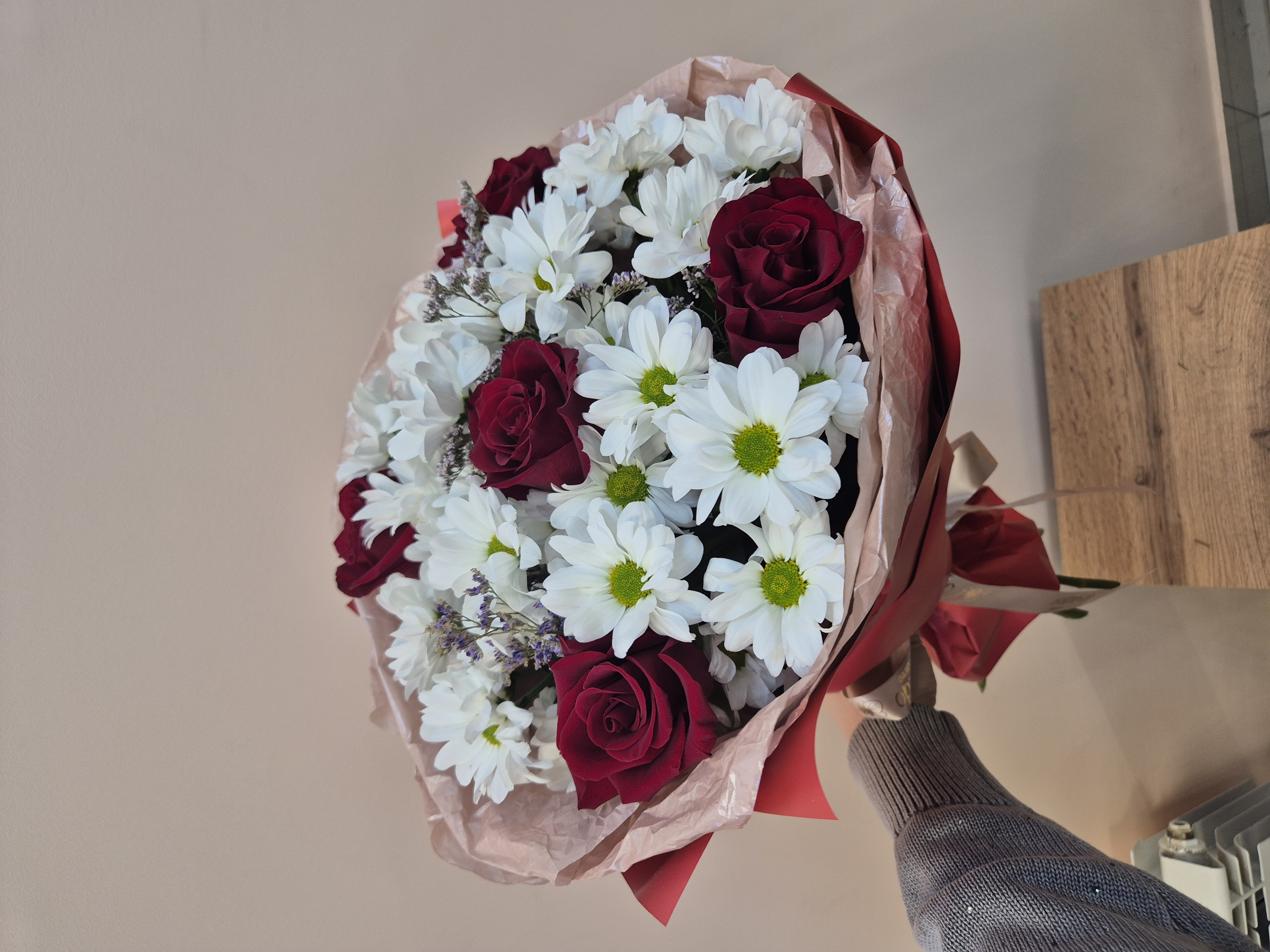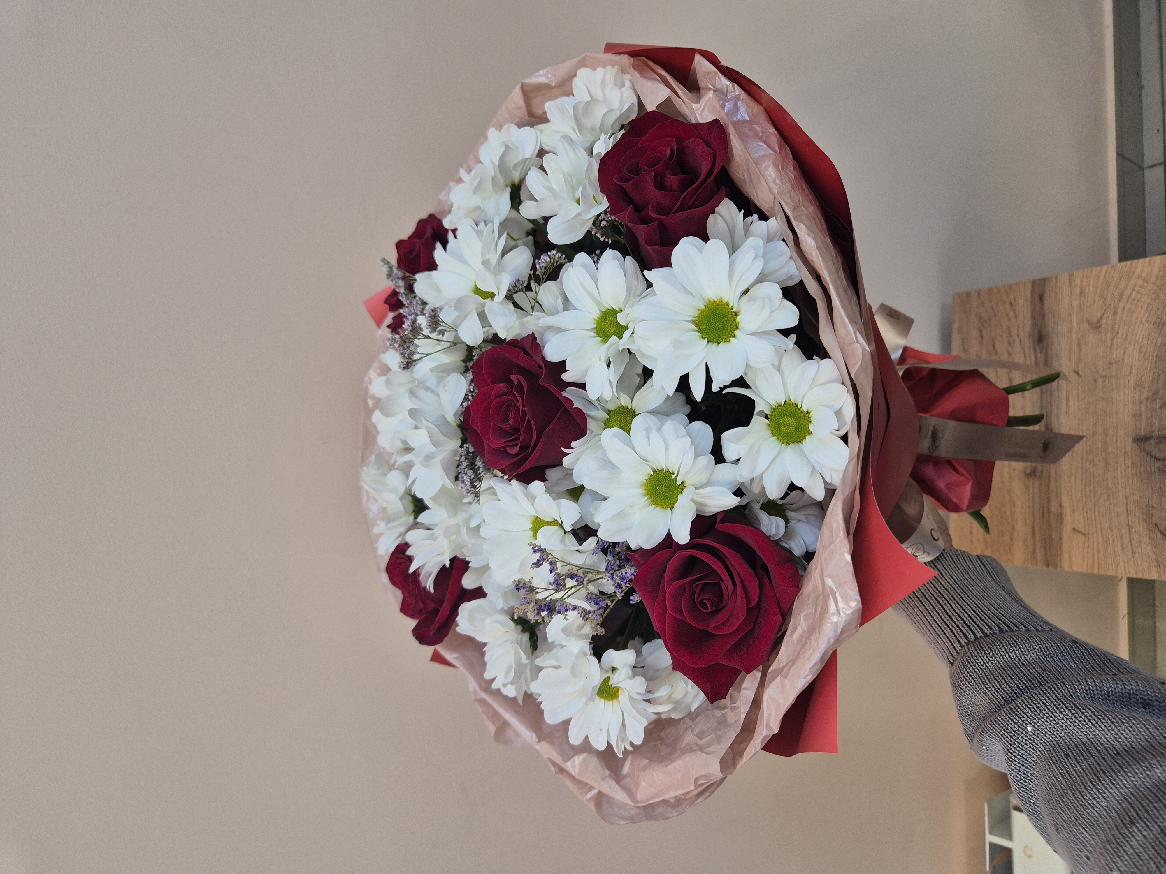 Сборный букет из красной розы и кустовой хризантемы — идеальный выбор для выражения теплых чувств и искренней симпатии. Яркая цветовая гамма подчеркивает индивидуальность подарка, а гармоничное сочетание цветов создает элегантность и утонченность. Доставим радость адресату с нашим букетом, подчеркнув Ваше внимание к деталям и безупречный вкус!